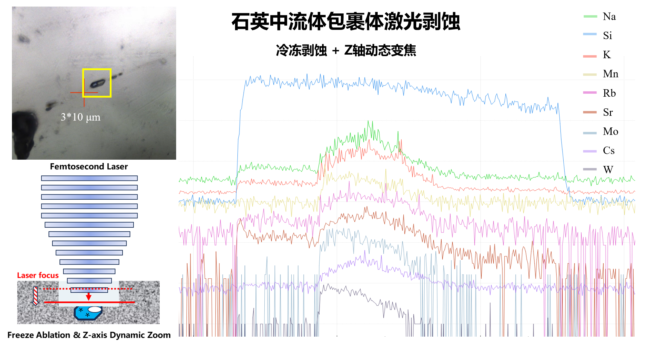 3. 传统飞秒景深限制剥蚀困难?流体包裹体剥蚀液体飞溅信号采集困难?——Z轴动态变焦技术与冷冻剥蚀技术